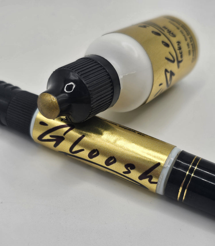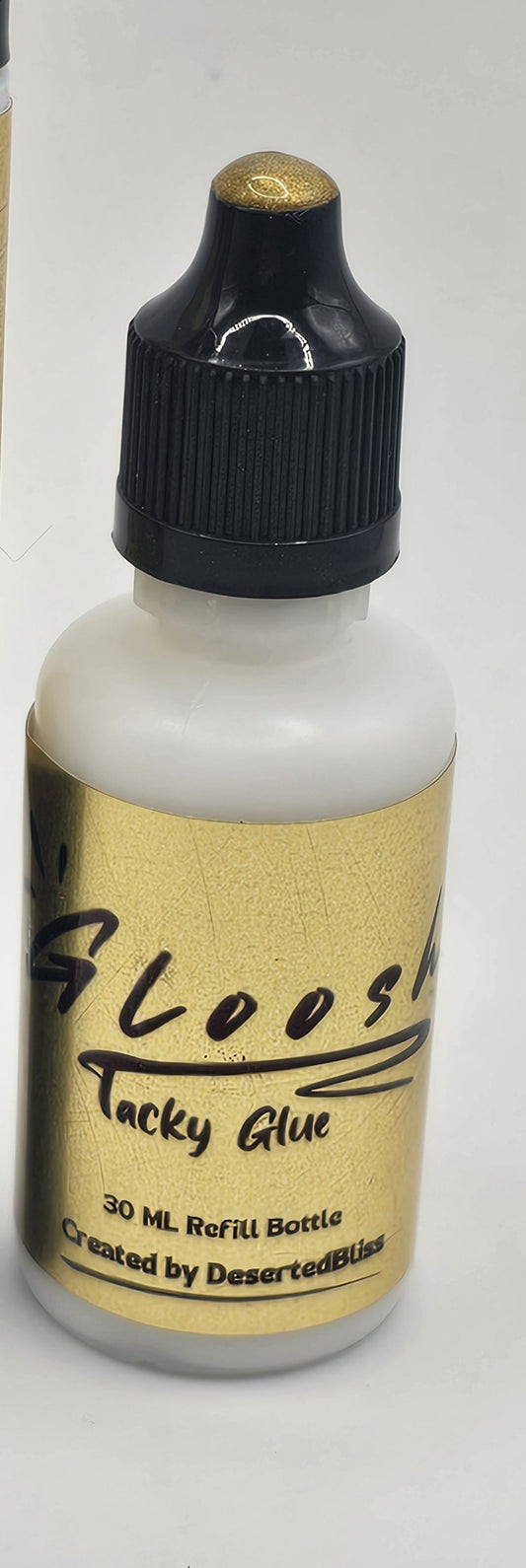 Gloosh Tacky glue is my own handmade tacky glue formula. If you know me, you know I love working with glue in my projects. Normally I use hot glue, but it can be tricky to use at times. That's where Gloosh comes in. It makes creating with glue, effortless. Get the the fine tip refill bottle to create dimension to any piece of art or get the 60ml bottle for more gloosh fun! Then top the dried tacky gloosh with mica powder, transfer foil, or fine glitter for a pop of color and shine. You can also use gloosh to adhere rhinestones, sequins, etc. This glue stays tacky for days, so you can spruce it up at your own pace.