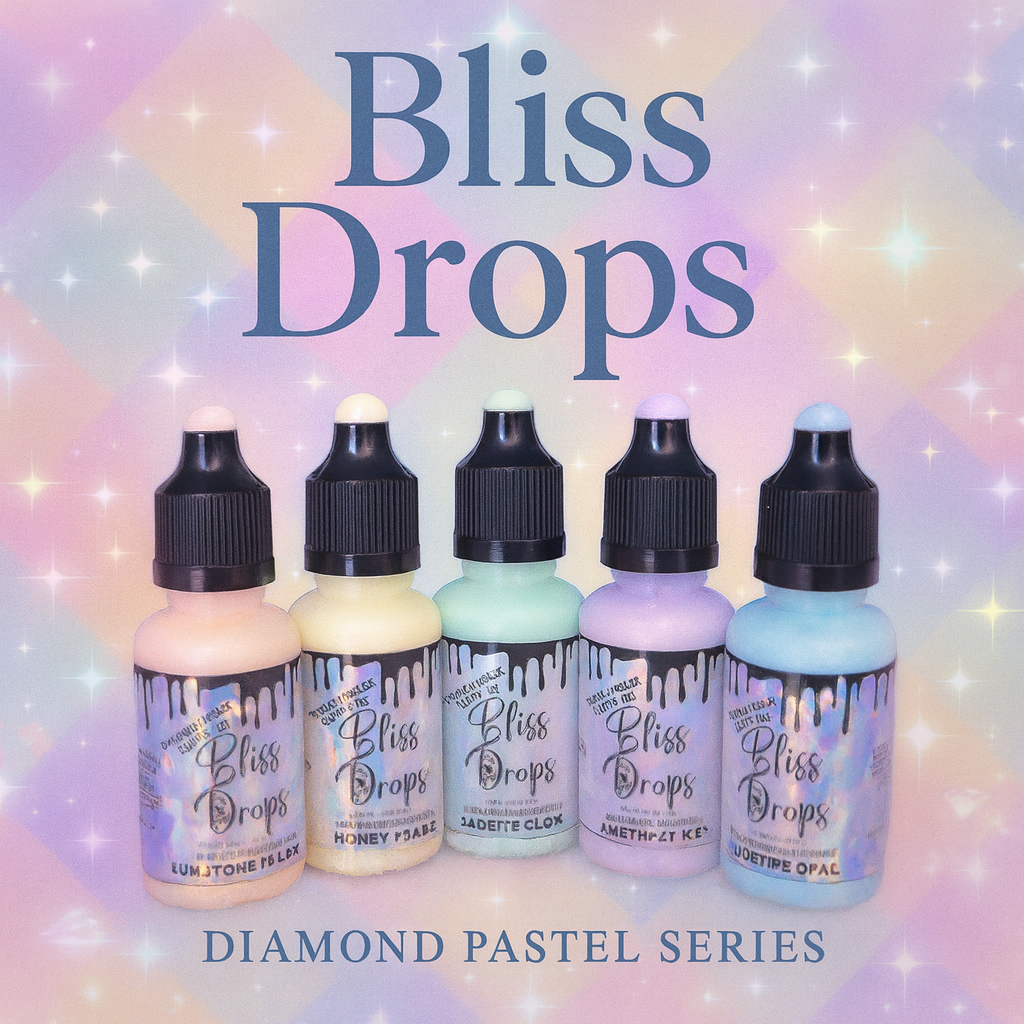 Bliss Drops are an acrylic based paint that adds dimension to your pieces. Not only do they add a cool pop of color, but they also add some sparkle!