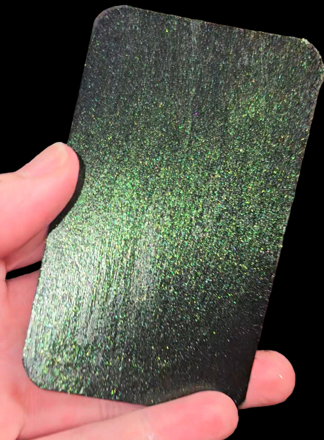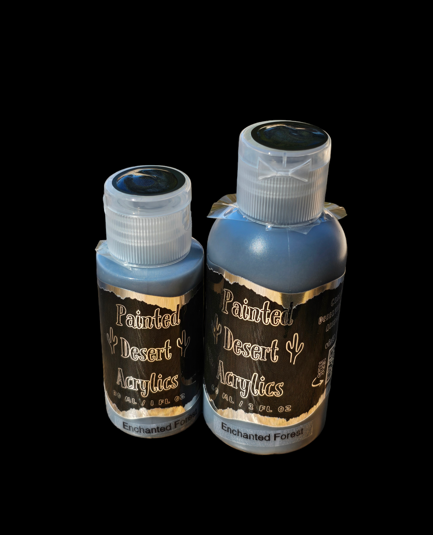 Unleash your inner risk-taker with Enchanted Forest - Painted Desert Acrylic! This bold and sparkly dark green shifts to a mysterious dark grey from certain angles, creating an enchanting effect. Push boundaries and add a touch of magic to your artwork with this unique color.
