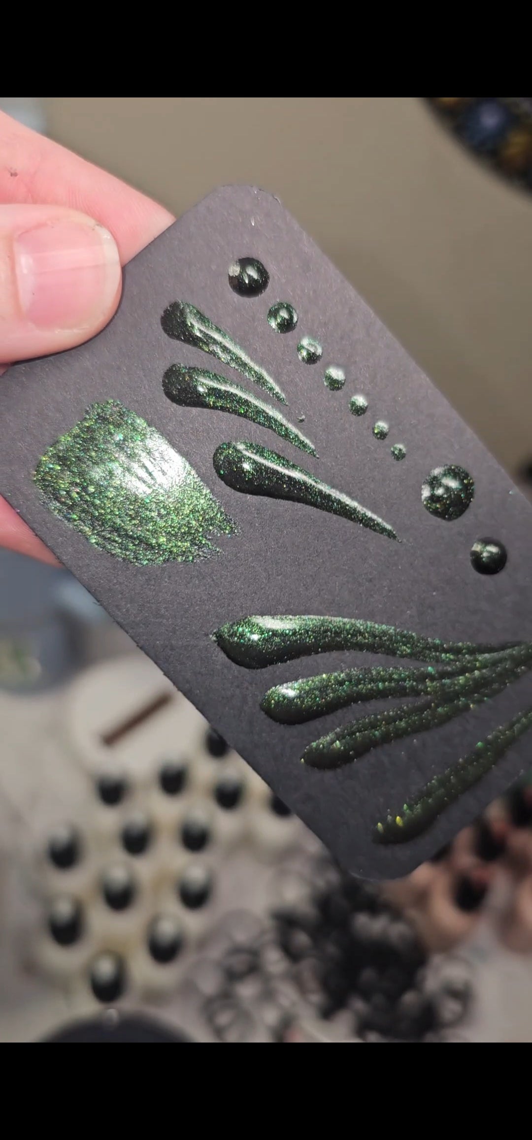Tina Johri Enchanted Forest is a beautiful deep sparkly green. The sparkle is unbelievable! I love it